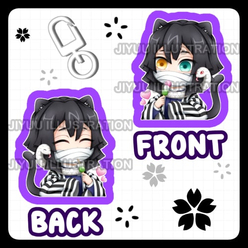This keychain is clear and about 2.5 inches tall. It is double sided and the front and back artworks are different! The artworks are well protected with a clear epoxy coating. The keychain also comes with a color coordinated keyring clasp and a heart or star charm.