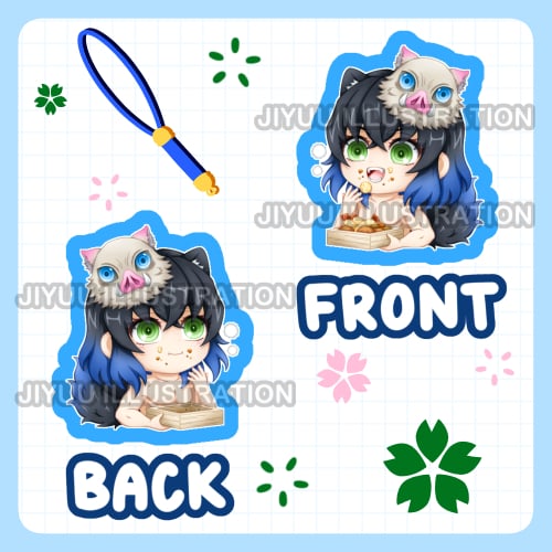 These phone charms are clear and about 1.5 inches tall. They are double sided and the front and back artworks are different! The artwork is sandwiched between two acrylic boards and well protected. The phone charms also come with a color coordinated phone strap and a flower charm.