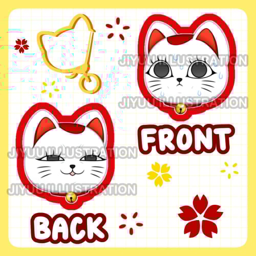 This keychain is clear and about 2.5 inches tall. It is double sided and the front and back artworks are different! The artworks are well protected with a clear epoxy coating. The keychain also comes with a gold cat shaped keyring clasp and a star charm.